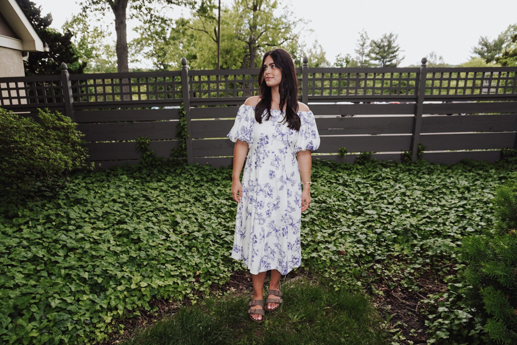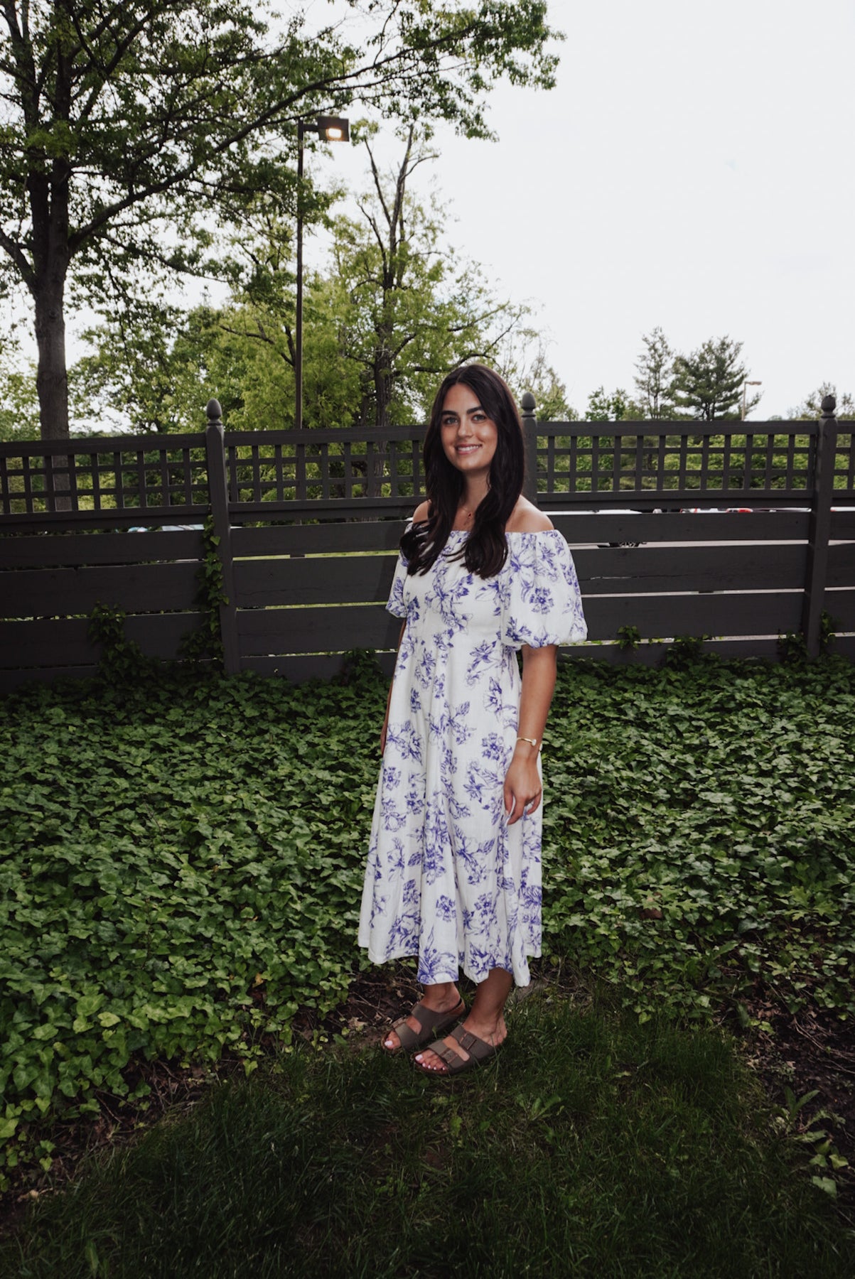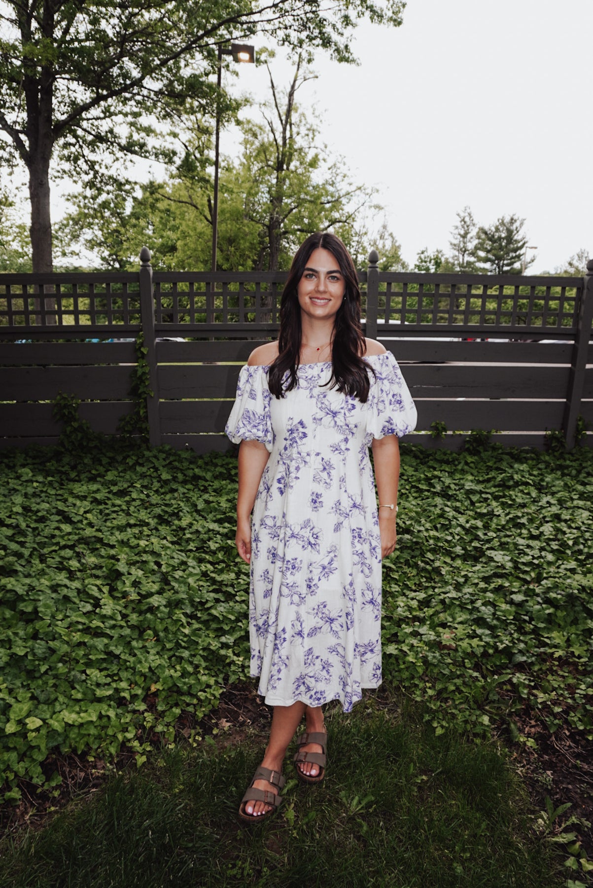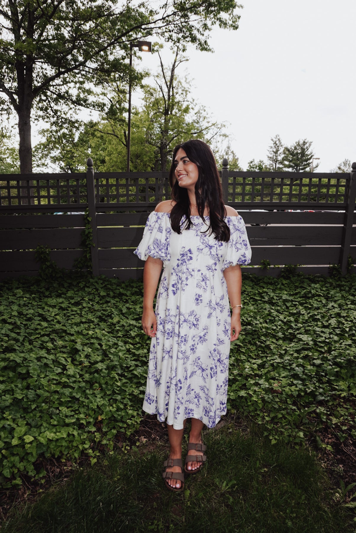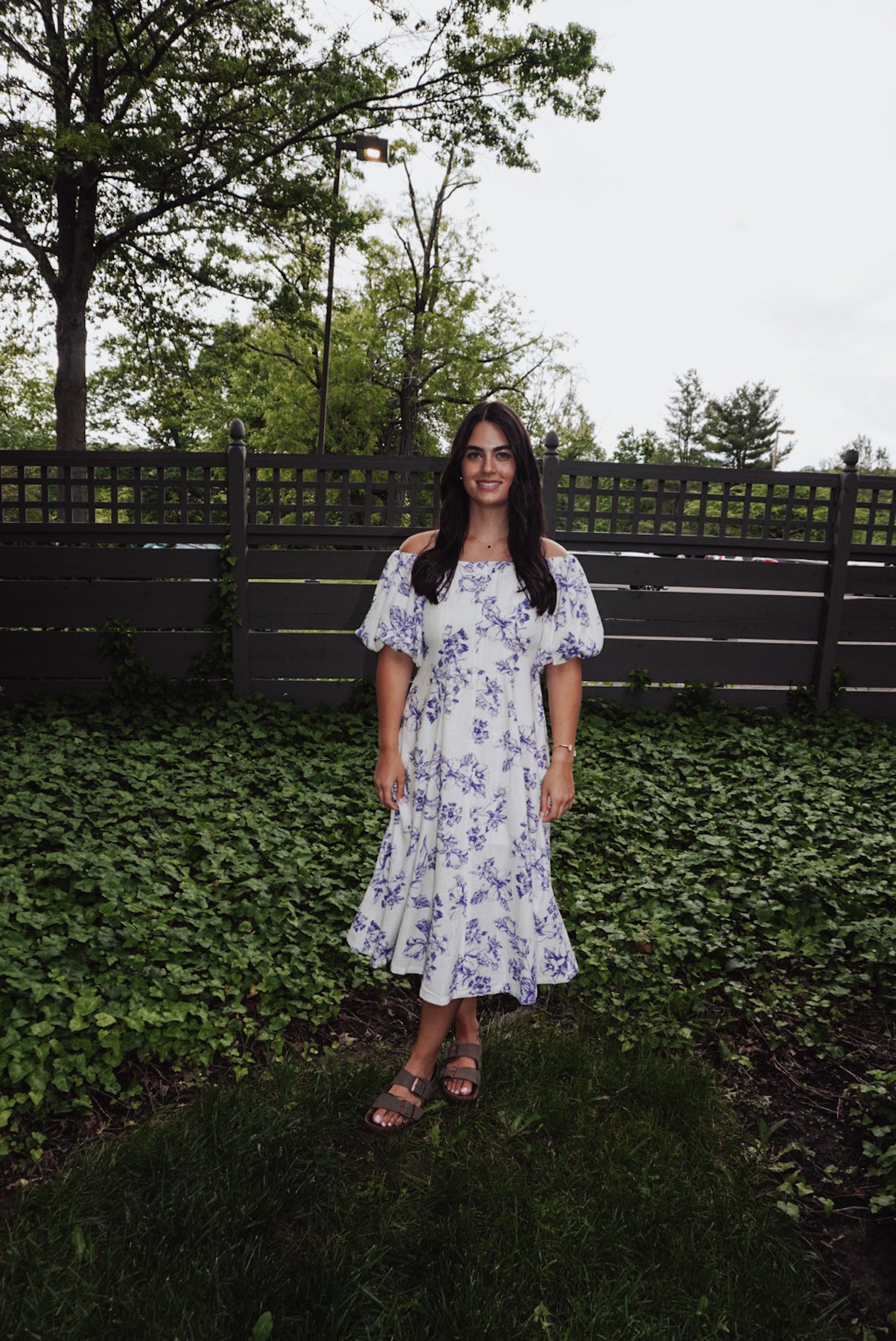 Romantic, flowy, and effortlessly feminine—the Undressed Dress is your go-to for feeling put together without trying too hard. Featuring an off-the-shoulder neckline and dreamy puff sleeves, this midi dress brings cottagecore charm to every occasion. The soft white base is adorned with delicate lavender floral print, giving it that perfect blend of whimsy and polish. A hidden back zipper keeps the silhouette smooth and flattering.