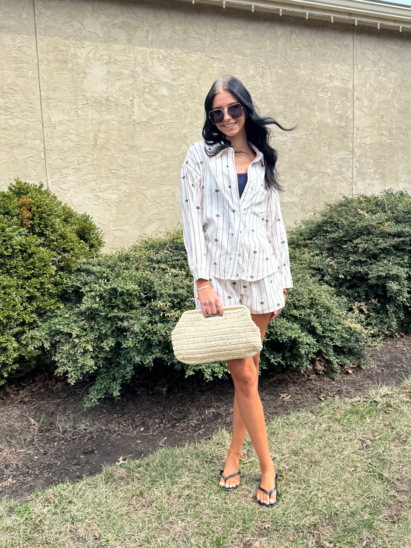 Embrace laid-back luxury with this lightweight linen shirt set, featuring earthy brown stripes and vibrant green palm tree accents. Designed for comfort and style, the breathable fabric keeps you cool even on the hottest tropical days, making it the perfect choice for beach getaways, poolside lounging, or casual island adventures. The relaxed fit and natural texture give it an effortless vibe, while the unique print adds a touch of personality. Pair it with sandals and sunnies, and you're vacation-ready.