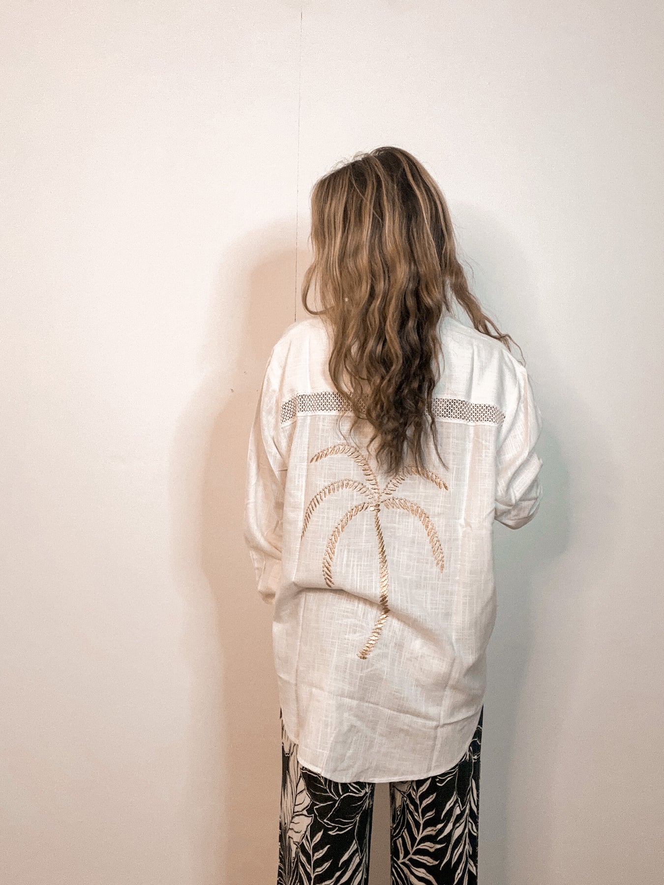 Experience the luxury of linen with our Palm Shirt. This button-up shirt is crafted with a breathable linen fabric and adorned with a gold palm tree design!