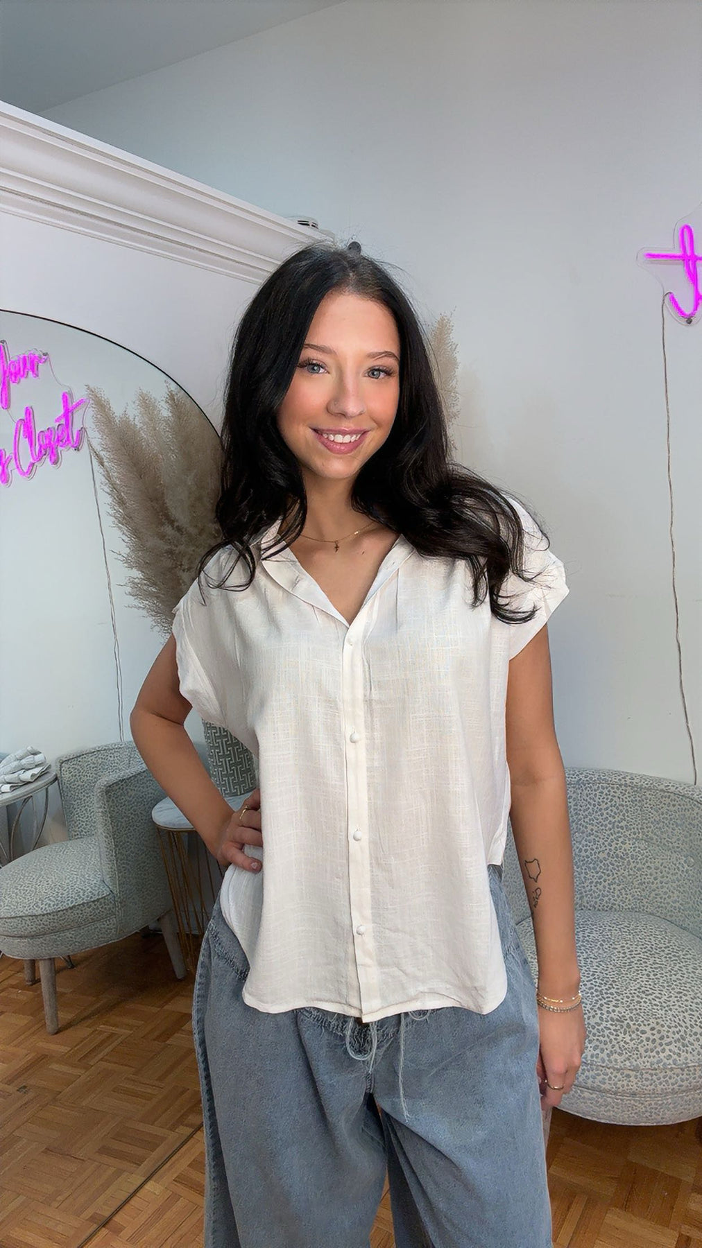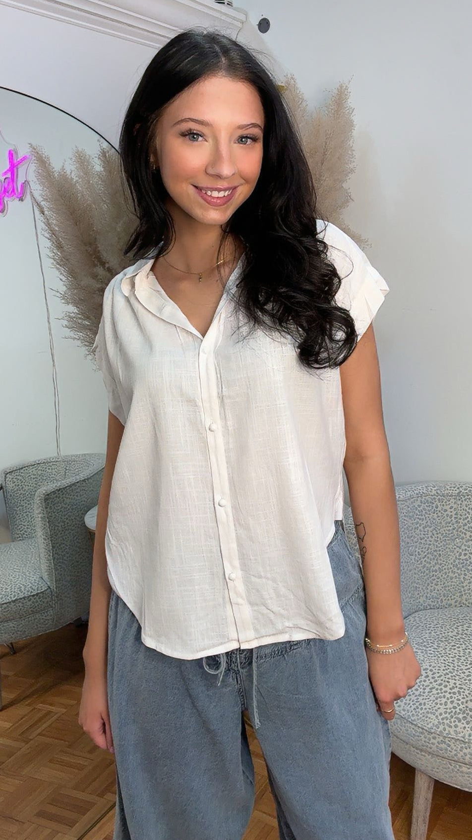 Stay cool and effortlessly chic in our Breezy Linen Button-Up Top! ☀️✨ Designed with a lightweight, airy linen-style fabric, this top is perfect for warm-weather days. The classic button closure and collared neckline add a touch of sophistication, while its versatile fit makes it easy to dress up or down. Pair it with denim, skirts, or layer it over swimwear for the ultimate laid-back summer style!